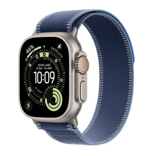 Apple Watch Ultra 3 GPS + Cellular 49mm Natural Titanium Case with Blue/Bright Blue Trail Loop - S/M (MEWR4)
